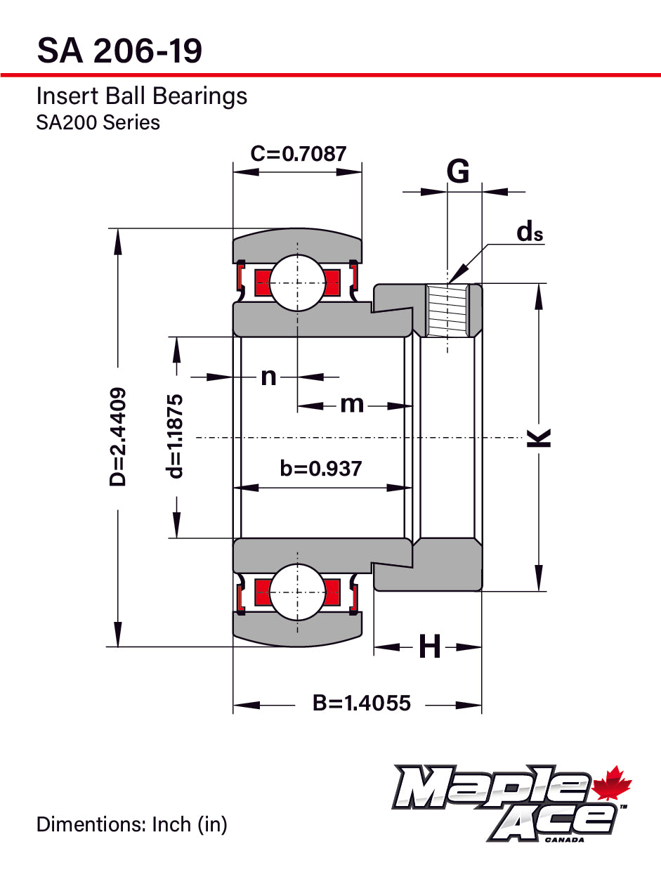SA206-19 Insert Bearing 1-3/16" Bore, Spherical OD, Eccentric Lock Collar, No Lube Hole